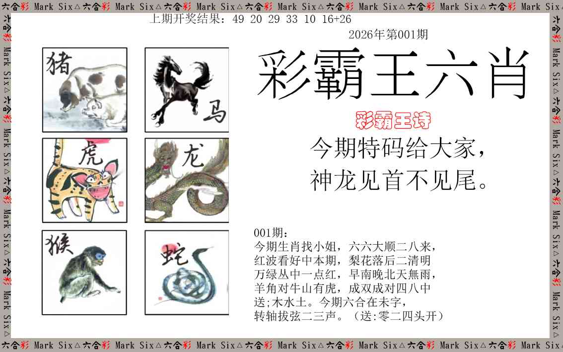 001期:⑨肖 【蛇马鸡狗虎鼠龙牛猴】 开??准